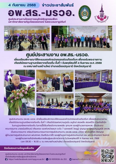 4 กันยายน 2568 อพ.สธ.-มรวอ.เข้าเยี่ยมเยียนพิจารณาให้คะแนนองค์กรปกครองส่วนท้องถิ่นฯ เพื่อขอรับพระราชทานเกียรติบัตรงานฐานทรัพยากรท้องถิ่น